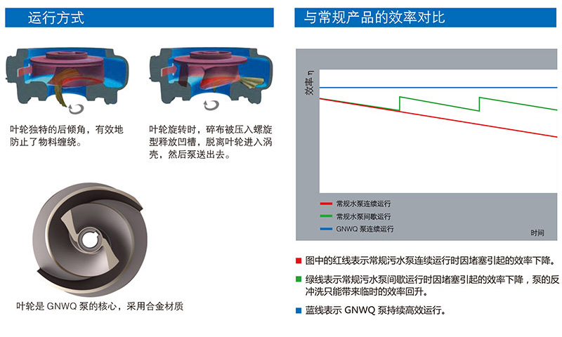 GNWQ污水切割排污泵产品材质和运行方式及与常规产品的效率对比